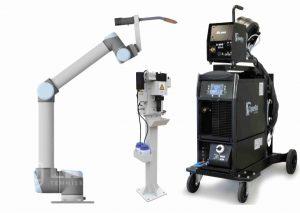Modular pulsed synergic welding equipment of 400 A. Integrated together with Universal Robots UR5 or UR10.